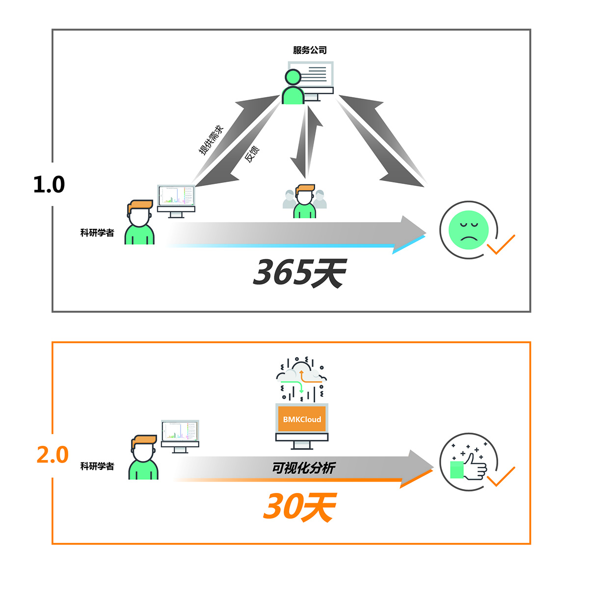 數(shù)據(jù)分析要求變高,對科技服務類公司無疑是個大的挑戰(zhàn)。首先,對科研數(shù)據(jù)的深入挖掘往往涉及到更深層次的科學問題,個性化程度極強,這就要求生物信息人員不但要掌握生信專業(yè)知識和技能,還有有相對豐富的生物學知識,才能真正理解科學家的需求,對服務人員的要求大大提高;其次,由于科研工作本身探索的就是未知領域,存在相當?shù)牟淮_定性,數(shù)據(jù)分析的結果不一定和科學家最初的科研設計一致,會導致科學家對服務公司的滿意度不高。因此科研工作者開始不斷的換公司進行嘗試,隨著小公司的不斷涌現(xiàn),稂莠不齊,科技服務市場也越來越混亂。數(shù)據(jù)分析同質(zhì)化嚴重,數(shù)據(jù)深入挖掘程度不足,溝通效率低,分析成本高等開始制約科技服務行業(yè)的發(fā)展。因此必須通過變革,用一種新的更高效的模式來逐步優(yōu)化現(xiàn)有的科技服務模式。