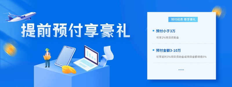 1、預(yù)付金額小于3萬,可享2%項(xiàng)目資助金。