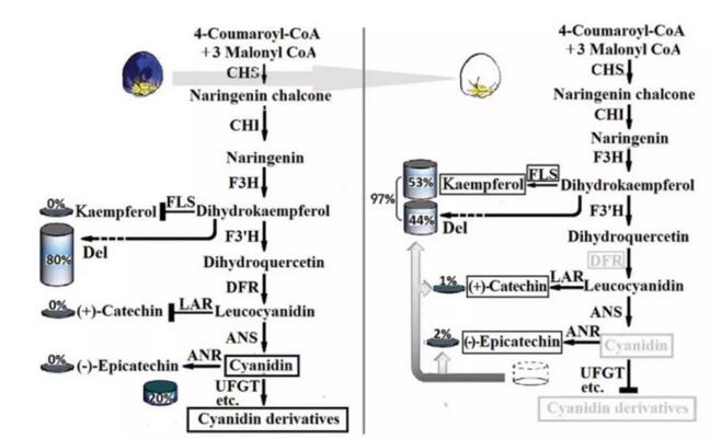 圖1 藍(lán)色和白色花中花青素代謝過程通路