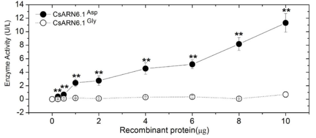 圖7 CsARN6.1^Asp和CsARN6.1^Gly蛋白活性比較