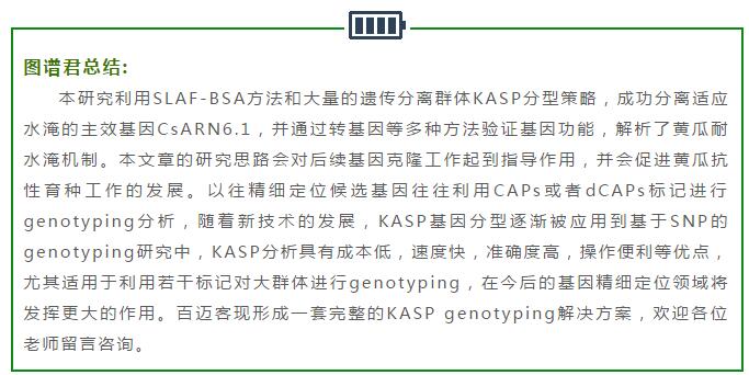 Bulked Segregant Analysis(BSA)分析是利用極端性狀個(gè)體混池快速進(jìn)行功能基因挖掘的常用方法,廣泛應(yīng)用在植物基因克隆方面。SLAF-seq是百邁客自主研發(fā)的簡(jiǎn)化基因組測(cè)序技術(shù),通過對(duì)基因組特定的酶切片段進(jìn)行高通量測(cè)序,在降低基因組復(fù)雜度的基礎(chǔ)上,又獲得大量的基因組變異信息,在群體遺傳研究中發(fā)揮著重要作用。將SLAF-seq和BSA分析完美結(jié)合(SLAF-BSA)進(jìn)行功能基因定位,是一種快速、準(zhǔn)確、性價(jià)比極高的分析策略。日前,由百邁客和揚(yáng)州大學(xué)陳學(xué)好教授課題組合作,利用SLAF-BSA策略定位黃瓜耐淹基因,相關(guān)研究成果發(fā)表于新一期的Plant Journal雜志。本期圖譜君將對(duì)這一成果解讀,同時(shí)文末繼續(xù)有基于遺傳群體進(jìn)行基因定位的國(guó)自然標(biāo)書,期待能給大家3月份的國(guó)自然基金申請(qǐng)帶來一些靈感。