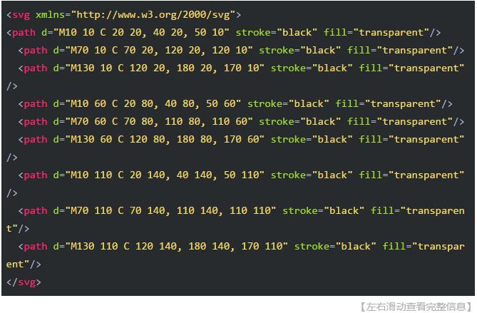 與S命令相似,是Q命令的簡寫命令。與S命令相似,T也會通過前一個控制點,推斷出一個新的控制點。這意味著,在你的第一個控制點后面,可以只定義終點,就創(chuàng)建出一個相當(dāng)復(fù)雜的曲線。