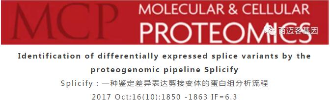 Splicify提供了一種蛋白組數(shù)據(jù)分析方法,可以用于確定由mRNA選擇性剪接產(chǎn)生的疾病特異性蛋白生物標(biāo)志物,適合用臨床前模型系統(tǒng)來解決基礎(chǔ)研究問題。其中剪接變異在RNA水平上的驗(yàn)證是通過RT-qPCR以及Iso-seq得到的全長轉(zhuǎn)錄本進(jìn)行的;通過Iso-seq得到的全長轉(zhuǎn)錄本可以對新的剪接事件在蛋白層面上進(jìn)行驗(yàn)證。