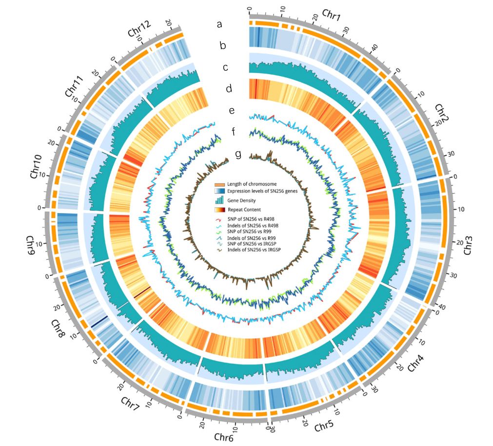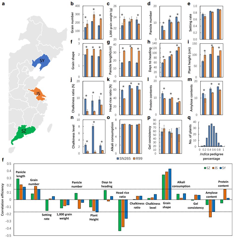 秈稻和粳稻為亞洲栽培水稻的兩個(gè)亞種,它們的地理分布以及形態(tài)學(xué)性狀差異明顯,揭示其農(nóng)藝性狀背后的遺傳基礎(chǔ)對(duì)于水稻生產(chǎn)非常重要,然而,其遺傳背景、生態(tài)條件以及農(nóng)藝性狀之間的關(guān)系尚不清楚。沈農(nóng)265(SN265)是我國(guó)第一個(gè)商用的超級(jí)稻,它作為中國(guó)北方骨干親本引領(lǐng)著育種方向。本研究利用二代和三代測(cè)序?qū)Ρ狈骄统?jí)稻SN265和R99進(jìn)行測(cè)序,并獲取SN265高質(zhì)量基因組,又構(gòu)建了RIL群體重測(cè)序遺傳連鎖圖譜,并對(duì)多個(gè)重要農(nóng)藝性狀進(jìn)行了QTL分析。此外,還發(fā)現(xiàn)若干基因功能隨生態(tài)環(huán)境的變化而改變,并且許多等位基因?qū)Σ煌倪z傳背景呈現(xiàn)差異性的響應(yīng)。