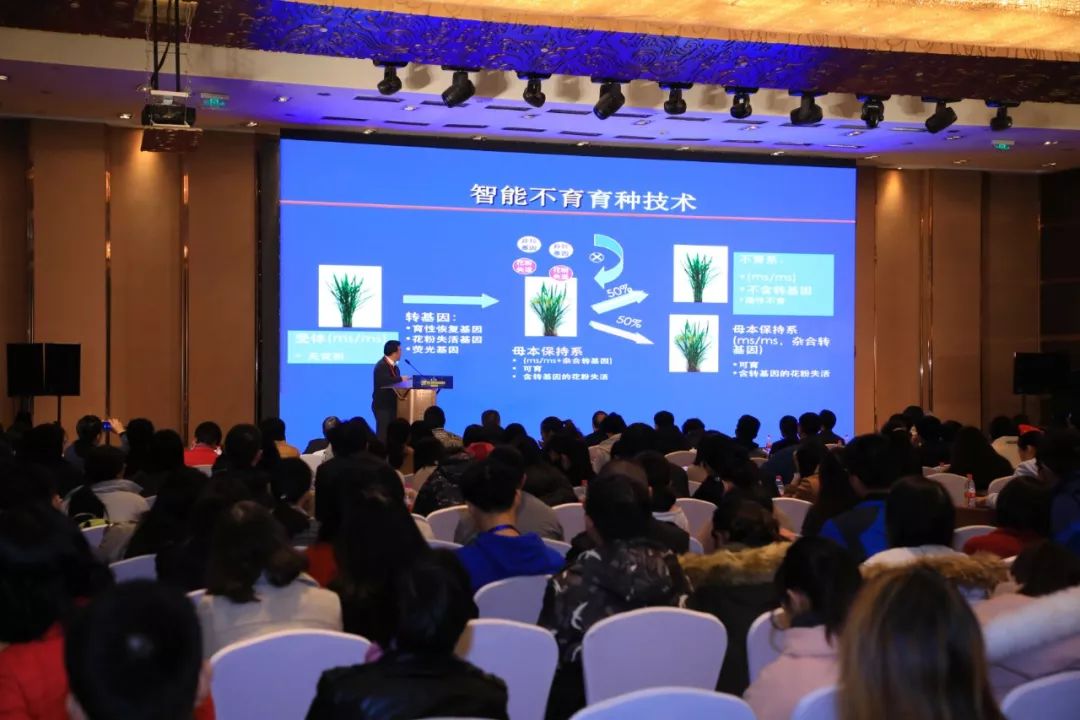 鄧興旺院士對應(yīng)用基因測序?qū)ΜF(xiàn)代育種技術(shù)的重要影響做了講解。介紹了新一代水稻和小麥雜交種質(zhì)生產(chǎn)技術(shù)的發(fā)展,報告中提到利用了一種新型的編碼GMS氧化還原酶的核基因OsNP1成功構(gòu)建了一種新型的水稻雄性不育體系。同時利用了基因組研究技術(shù)成功克隆了小麥雄性不育系Ms1。