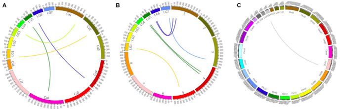 圖2.豌豆與其他三個(gè)物種近緣物種共線性分析