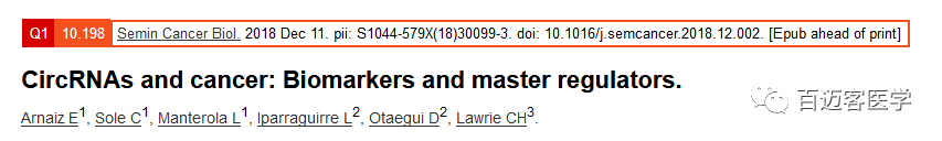 Arnaiz E, Sole C, Manterola L, et al. CircRNAs and cancer: Biomarkers and master regulators. Semin Cancer Biol. 2018 Dec 11.