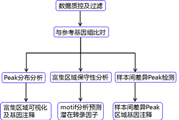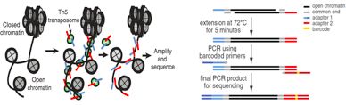 ATAC-seq:Assayfor Transposase-Accessible Chromatin with high throughput sequencing(使用高通量測序?qū)n5轉(zhuǎn)座酶易接近性核染色質(zhì)區(qū)域進(jìn)行測序分析),由美國加利福尼亞州斯坦福大學(xué)研究人員于2013年提出,是一種表觀遺傳學(xué)研究技術(shù),通過轉(zhuǎn)座酶對(duì)某種特定時(shí)空下開放的核染色質(zhì)區(qū)域進(jìn)行切割,獲得在該時(shí)空下基因組中所有活躍轉(zhuǎn)錄的調(diào)控序列。通過ATAC-seq研究可以得到全基因組上處于開放狀態(tài)的染色質(zhì)區(qū)域,進(jìn)一步定位核小體及相關(guān)調(diào)控元件。