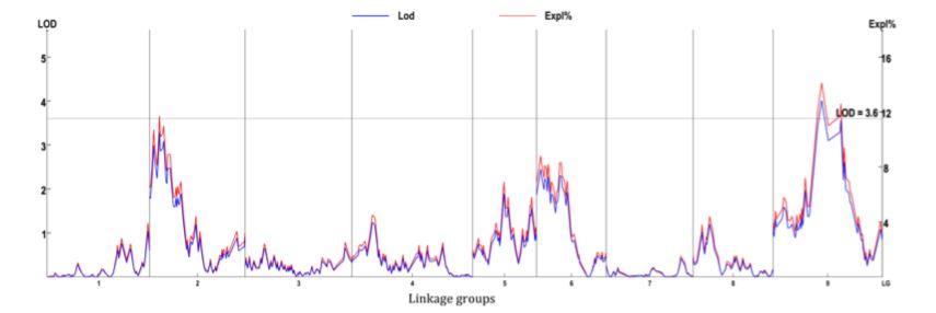 方法:SLAF測序,HighMap構(gòu)建遺傳圖譜,IciMapping進(jìn)行QTL定位,MapQTL進(jìn)行BLUE分析及QTL定位