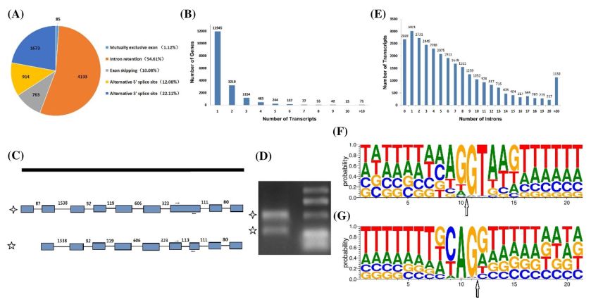 圖4.茶樹轉(zhuǎn)錄本及可變剪接特征分析