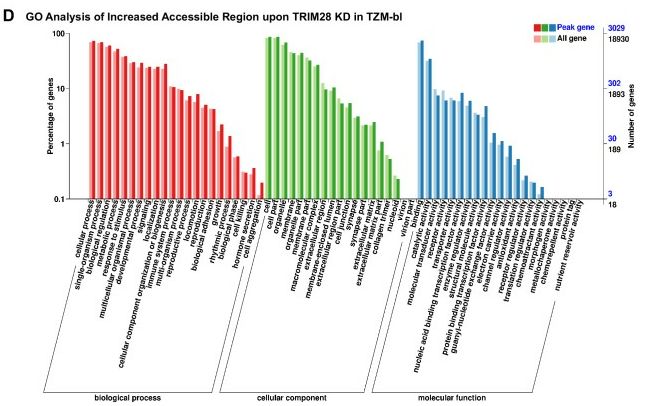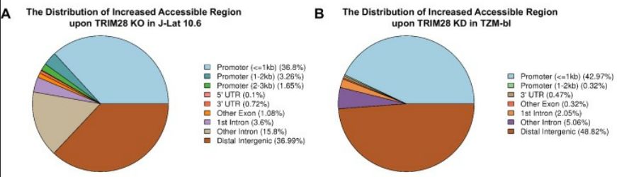 • ATAC-seq:J-Lat 10.6或TZM-bl細(xì)胞系,研究TRIM28缺失后HIV-1啟動(dòng)子的染色質(zhì)可及性