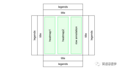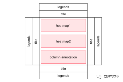 單個(gè)熱圖由熱圖主體和熱圖組件組成。 熱圖主體可以按行和列分割。 熱圖組件是標(biāo)題,樹形圖,矩陣名稱和熱圖注釋,它們放在heamap體的四個(gè)側(cè)面上。