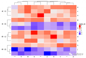 Heatmap(mat,?split?=?data.frame(rep(c(“A”,?“B”),?6),?rep(c(“C”,?“D”),?each?=?6)),?combined_name_fun?=?function(x)?paste(x,?collapse?=?“\n”))4)熱圖的簡(jiǎn)單注釋