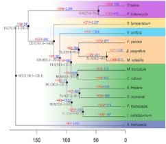 比較基因組分析:直系同源基因鑒定:?OrthoMCL (version 2.0);系統(tǒng)發(fā)育樹構(gòu)建與分化時(shí)間估算:?MUSCLE、Gblocks (version 0.91b)和RaxML(version 8),MCMCTREE評(píng)估分化時(shí)間;基因家族擴(kuò)張和收縮分析:CAFE(vertion 3.1);染色體共線性分析、4DTV檢測(cè)及Ks值計(jì)算:MCscan。