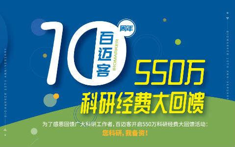 為了感謝廣大科研工作者的長(zhǎng)期支持與信任,百邁客開(kāi)啟550萬(wàn)科研經(jīng)費(fèi)大回饋活動(dòng)!