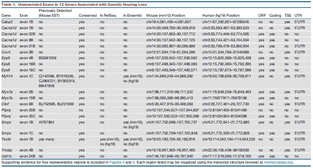• 對(duì)耳聾相關(guān)基因的分析鑒定了迄今未被識(shí)別的外顯子;