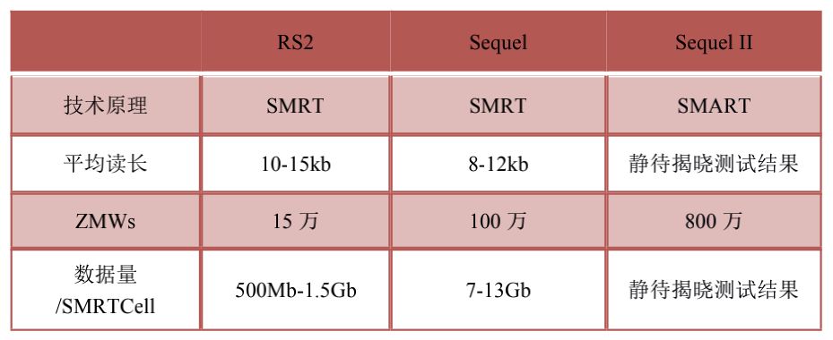 PB平臺(tái):RSII和Sequel系列儀器,目前Sequel系列平臺(tái)測(cè)序通量高、單Gb數(shù)據(jù)成本低、周期短的特點(diǎn)已將RSII平臺(tái)取代。