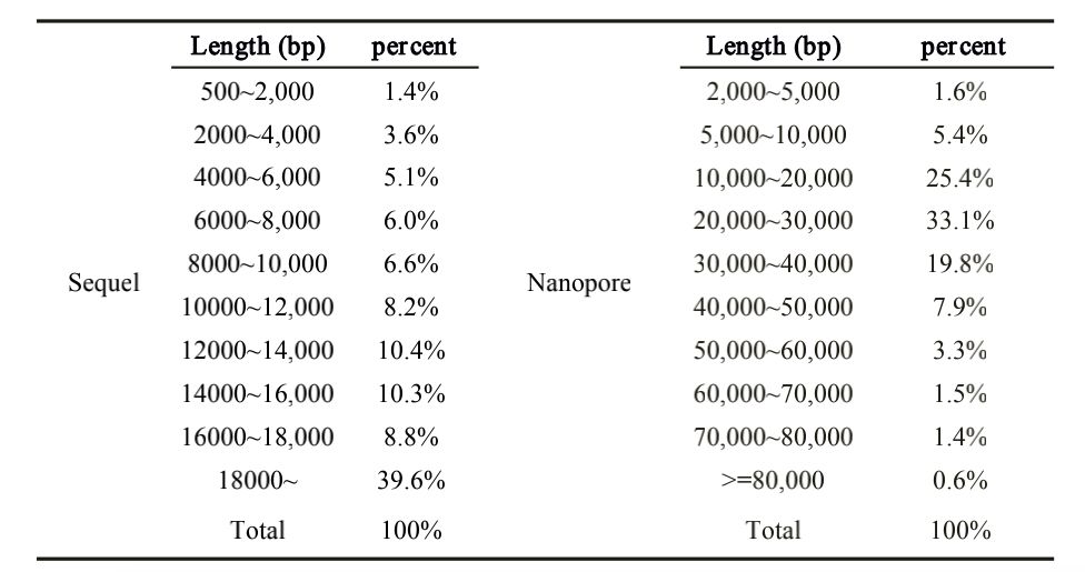 總結(jié):從這份數(shù)據(jù)可以看出,PB 平臺(tái)18K以上的數(shù)據(jù)占39.6%,Nanopore平臺(tái)20K以上的數(shù)據(jù)可達(dá)68%。