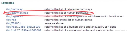https://www.kegg.jp/kegg/rest/keggapi.html#list,點擊如圖所示鏈接得到KEGG所有人類通路的列表,截至20190418,收錄了330條通路。
