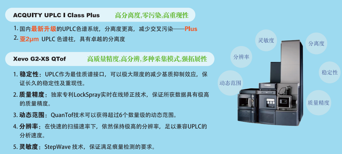 百邁客成功引進(jìn)Waters公司的Xevo G2-XS QTOF質(zhì)譜系統(tǒng),并配備UPLC I Class Plus色譜儀,這套系統(tǒng)擁有成熟耐用的技術(shù)體系和關(guān)鍵技術(shù),整體在分離度和準(zhǔn)確性上都有出色表現(xiàn),并且得到廣大科研工作者的認(rèn)可。百邁客依托于這套平臺,自主建立實(shí)驗(yàn)體系,配合已經(jīng)開發(fā)出的代謝組分析流程,帶動著代謝組學(xué)技術(shù)在儀器平臺和分析內(nèi)容上逐步迭代更新。