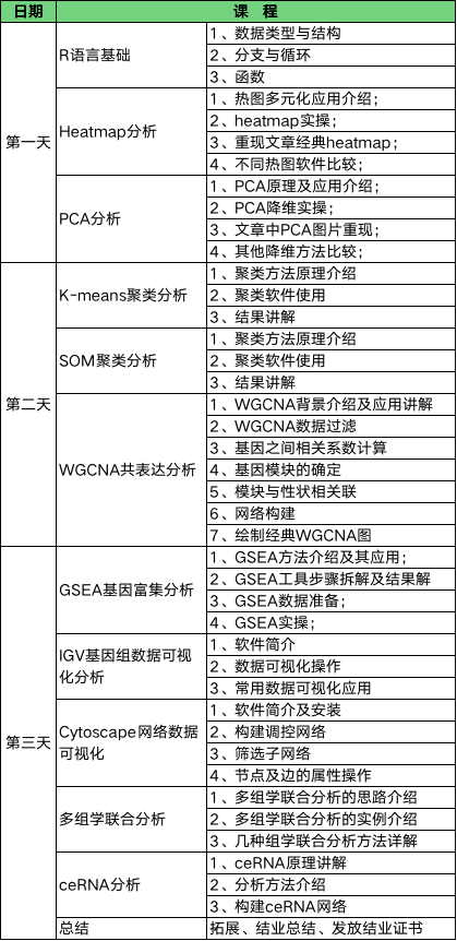 隨著測(cè)序技術(shù)的發(fā)展及測(cè)序成本的降低,轉(zhuǎn)錄組分析逐漸發(fā)展成為一項(xiàng)基礎(chǔ)的分析方法。越來越多的科研項(xiàng)目中使用轉(zhuǎn)錄組數(shù)據(jù)分析來做為分析的支持手段之一。為了協(xié)助科研工作者對(duì)轉(zhuǎn)錄組測(cè)序數(shù)據(jù)進(jìn)行深度挖掘,本次培訓(xùn)將從常用的個(gè)性化分析軟件操作入手,帶領(lǐng)大家學(xué)習(xí)轉(zhuǎn)錄組分析中常用的分析方案及實(shí)現(xiàn)方法,從而滿足文章后期發(fā)表的需求,同時(shí)也為我們生物信息科學(xué)工作者們提供一個(gè)互相交流的平臺(tái)。