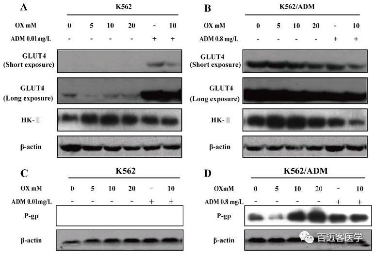這些數(shù)據(jù)表明,盡管耐藥的K562/ADM細胞系對藥物的敏感性不如其親本細胞系,但與草酸聯(lián)合使用時,其療效顯著提高。因此,抑制糖酵解可使K562/ADM細胞恢復ADM敏感性。