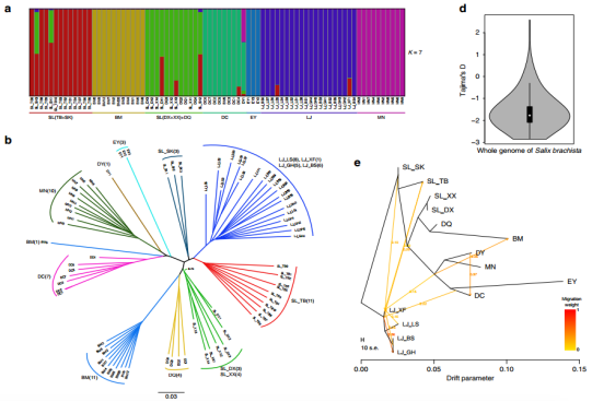 群體進(jìn)化研究:群體材料選擇(重測序,~22.1x),77個小墊柳(14個主要棲息地);