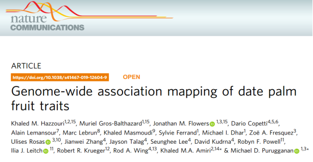 群體GWAS研究:群體材料選擇(重測序,~11.3X;):157個海棗品種( 145 個雌性品種和 12 個雄性個體);