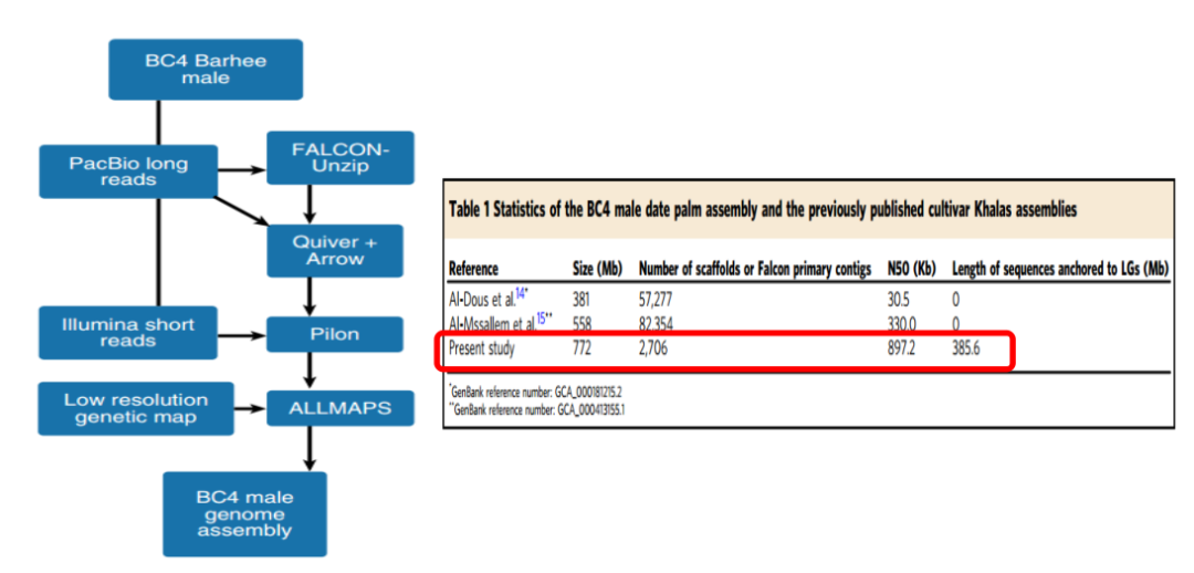 圖1 海棗樹(BC4雄株)基因組組裝