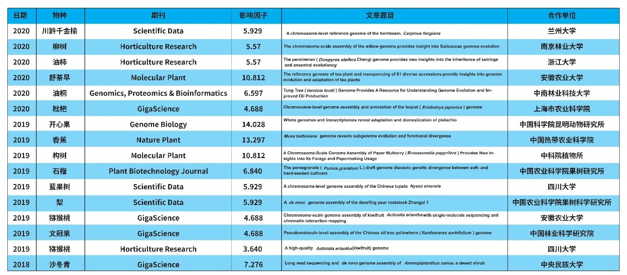 北京百邁客林木研究基因組合作文章(部分)