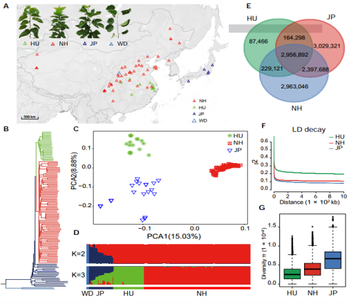 群體進(jìn)化研究:群體材料選擇(重測序:~15.6X):134份桑樹種質(zhì)(132份栽培種,來自中國和日本;2份野生種,來自中國陜西);