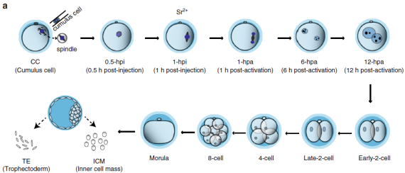 圖1a SCNT的流程和不同時(shí)期的細(xì)胞樣本