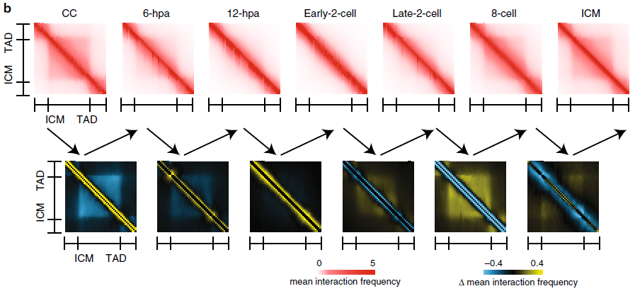 圖3b SCNT胚胎發(fā)育各個(gè)階段的TAD強(qiáng)弱變化