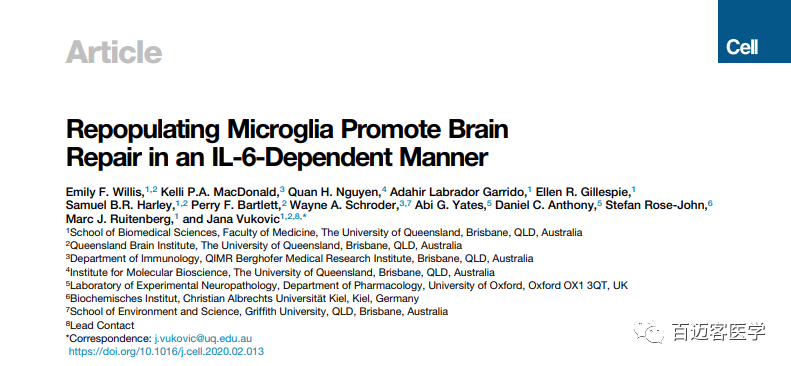 英文題目:Repopulating Microglia Promote Brain Repair in an?IL-6-Dependent Manner