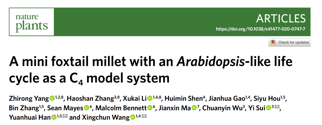 眾所周知,與C3植物相比,C4植物具有較高的光合效率和水肥利用率。因此,若能將C4光合途徑整合到水稻等C3作物,將有望大幅提高水稻產(chǎn)量,解決由于人口增長帶來的溫飽問題。然而,目前常用的模式植物擬南芥和水稻都是C3植物,作為C4作物的模式植物時有很大的局限性,無法解決諸如C4光合代謝以及許多黍亞科特殊的基礎(chǔ)問題。