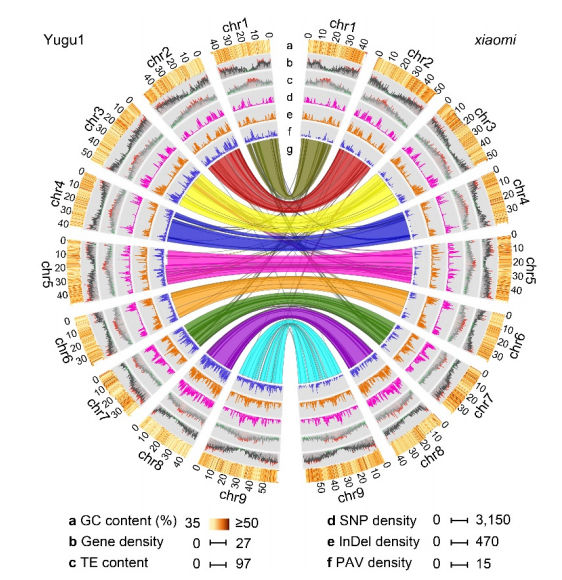 圖6?“小米”與豫谷1號基因組比較圈圖