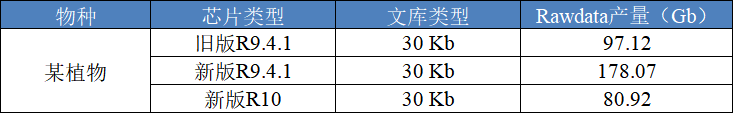 表1 同一樣品不同芯片對(duì)比產(chǎn)出情況(Denovo 30Kb 文庫(kù))