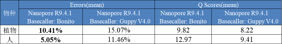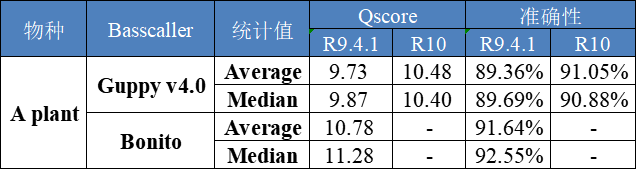 表4 新R9.4.1及R10 basecalling結(jié)果比對(duì)