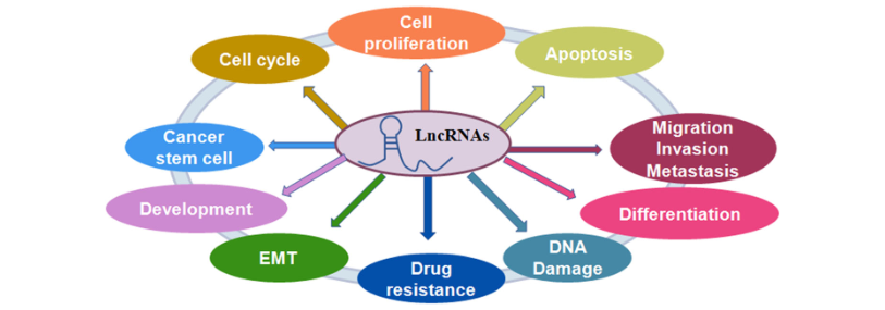 近年來,已證明非編碼RNA(ncRNA)參與結(jié)腸癌的發(fā)生和發(fā)展。眾所周知,ncRNA屬于一類轉(zhuǎn)錄本,主要被翻譯成蛋白質(zhì),它們?cè)诟鞣N細(xì)胞和生理過程中也起著重要作用。長度超過200個(gè)核苷酸的長非編碼RNA(LncRNA)通常通過競爭內(nèi)源RNA(ceRNA)參與多種生物過程,包括細(xì)胞增殖,分化,發(fā)育,凋亡和轉(zhuǎn)移。LncRNA可以與RNA,DNA和蛋白質(zhì)相互作用,形成RNA-RNA,RNA-DNA,RNA-蛋白質(zhì)復(fù)合物,從而通過多種機(jī)制調(diào)節(jié)基因表達(dá),包括轉(zhuǎn)錄調(diào)節(jié),mRNA穩(wěn)定性和翻譯。LncRNA可以充當(dāng)?shù)鞍踪|(zhì)的引導(dǎo)分子,支架或誘餌分子,以回收蛋白質(zhì)或RNA。LncRNA也可以影響染色質(zhì)的結(jié)構(gòu)并調(diào)節(jié)基因表達(dá)。