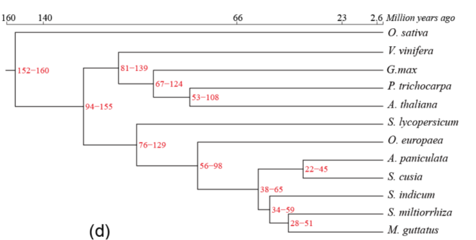 (10)分析中需要借助于化石時(shí)間矯正得到有分化時(shí)間的物種樹(shù),因此需要進(jìn)化樹(shù)分支上某一物種具有化石信息,為了分析的準(zhǔn)確性,盡量能在每個(gè)大分支內(nèi)有一個(gè)化石信息。常用的化石信息查詢網(wǎng)站:TIMETREE website ?(http://timetree.org/)