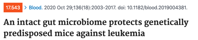 ?原文:An intact gut microbiome protects genetically predisposed mice against leukemia