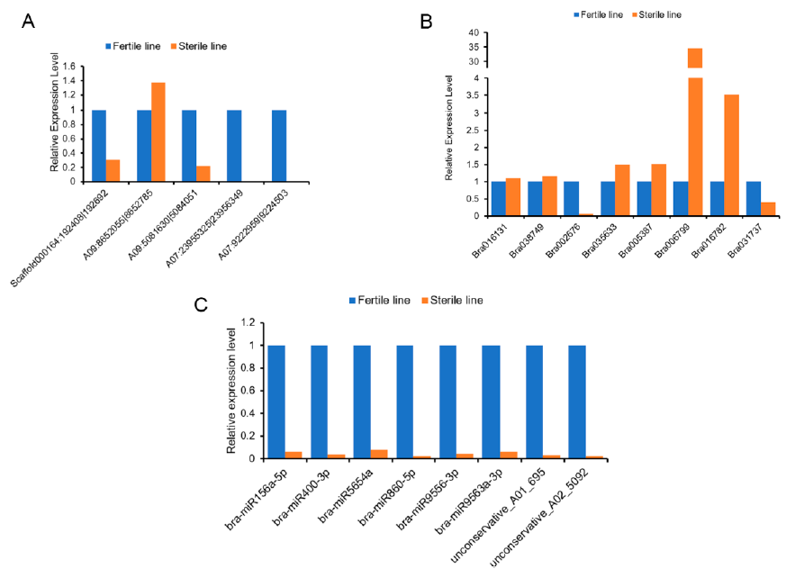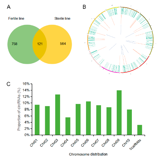 在以往的研究中,CircRNA作為內(nèi)源非編碼RNA的一員,被認為具有miRNA海綿和競爭性內(nèi)源RNA(ceRNA)功能。關(guān)于CircRNA在雄性不育和花藥發(fā)育中研究較少,因此作者在油菜中構(gòu)建了細胞質(zhì)雄性不育系(CMS),對不育系和可育系花蕾進行全轉(zhuǎn)錄組測序,揭示了油菜花藥發(fā)育中新的circRNA–miRNA–mRNA調(diào)控網(wǎng)絡(luò),為進一步研究CircRNA和miRNA在花藥發(fā)育中的功能提供了一定的基礎(chǔ)。