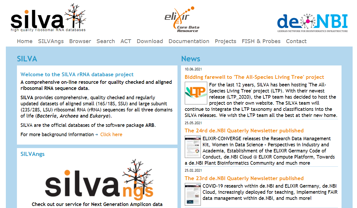 1.Silva數(shù)據(jù)庫:https://www.arb-silva.de/