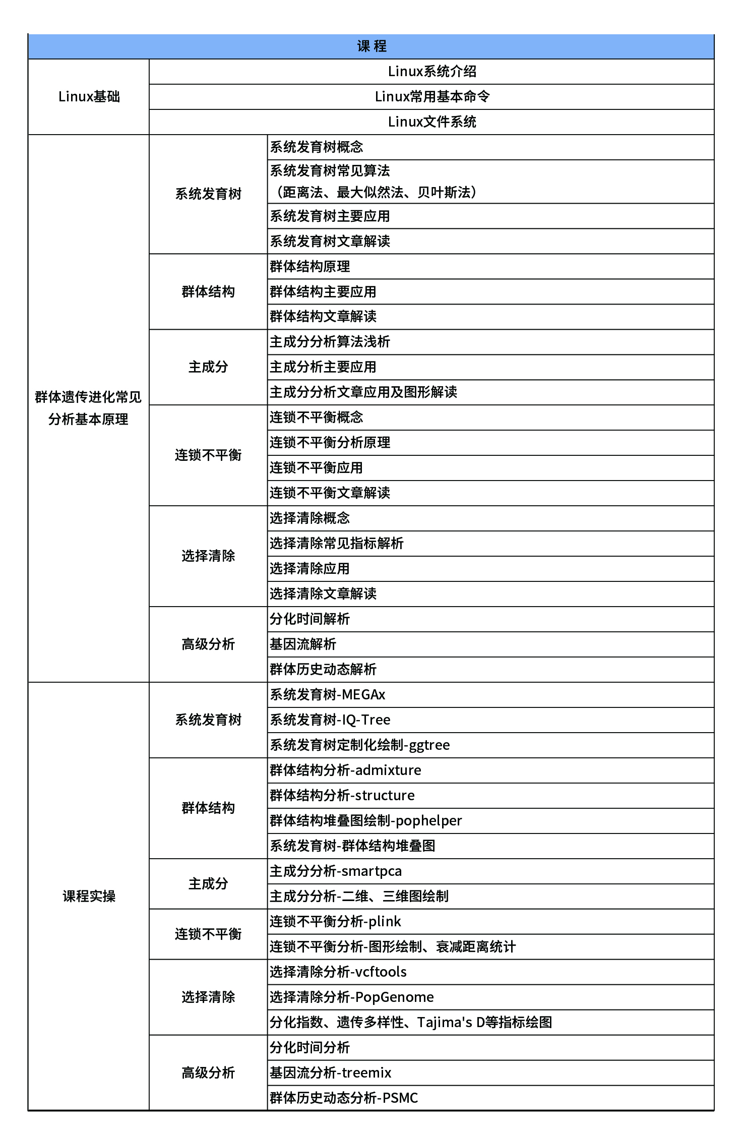 隨著測(cè)序技術(shù)的快速發(fā)展以及測(cè)序成本的極速下降,大規(guī)模的群體測(cè)序得以實(shí)現(xiàn)。拿到海量的測(cè)序數(shù)據(jù),如何研究材料的宏觀進(jìn)化、功能基因的定位,成為了阻礙眾多科研老師的一大障礙。本次課程梳理近年來(lái)高分文章行文思路,提取文章中遺傳進(jìn)化相關(guān)的常規(guī)分析內(nèi)容,同時(shí)涵蓋文章中的亮點(diǎn)分析(比如基因流、群體波動(dòng)史、時(shí)間分化等)。本次課程原理和實(shí)操相結(jié)合,偏重實(shí)操,免費(fèi)答疑,小型服務(wù)器免費(fèi)使用。