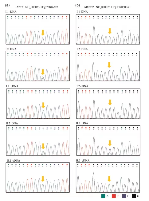 作者的結果相似,通過結合RNA-seq和RT-PCR,發(fā)現(xiàn)在非活性X染色體上特異表達的X-非活性特異轉錄物XIST僅在I.2和II.2的Xq28重復染色體上表達。這表明Xq28重復染色體是不活躍的。另外還發(fā)現(xiàn),兩個女性的Xq28重復等位基因上的MECP2和IRAK1(受XCI影響的基因)沒有轉錄表達。這解釋了為什么這兩名女性,特別是I.2,是無癥狀攜帶者。同時,作者推測,除了DNA甲基化之外,其他因素也在維持XCI狀態(tài),一種額外的抑制機制可能發(fā)生在非甲基化X染色體的轉錄水平,以抵消MECP2復制的有害表型效應。根據(jù)XCI,作者的發(fā)現(xiàn)為MECP2重復綜合征知識及其在女性中的表型后果增加了新的見解,這對遺傳和產(chǎn)前咨詢具有重要意義。