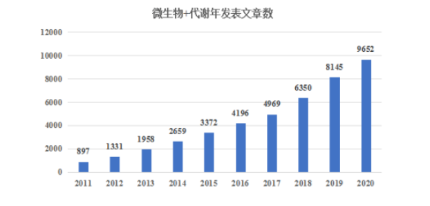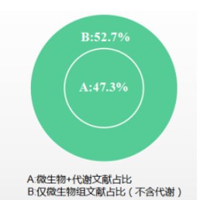 小編先在PubMed網(wǎng)站搜索了一下微生物組和代謝在2011-2020年的發(fā)文情況。以微生物組和代謝組為關鍵詞搜索文獻數(shù)量信息。從數(shù)據(jù)中我們可以看到,微生物和代謝相關文章在逐年增加,47.3%的微生物發(fā)表文獻中都包含代謝組,微生物組+代謝組研究已逐漸成為微生物研究中的重要多組學研究思路。