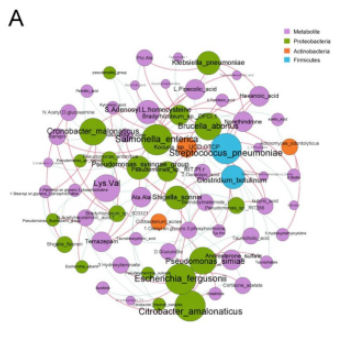 圖1. 盲腸微生物組與盲腸內(nèi)容物代謝產(chǎn)物相關性分析