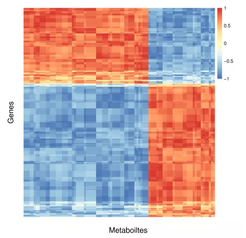 差異代謝物和差異功能基因的豐度相關性示例熱圖