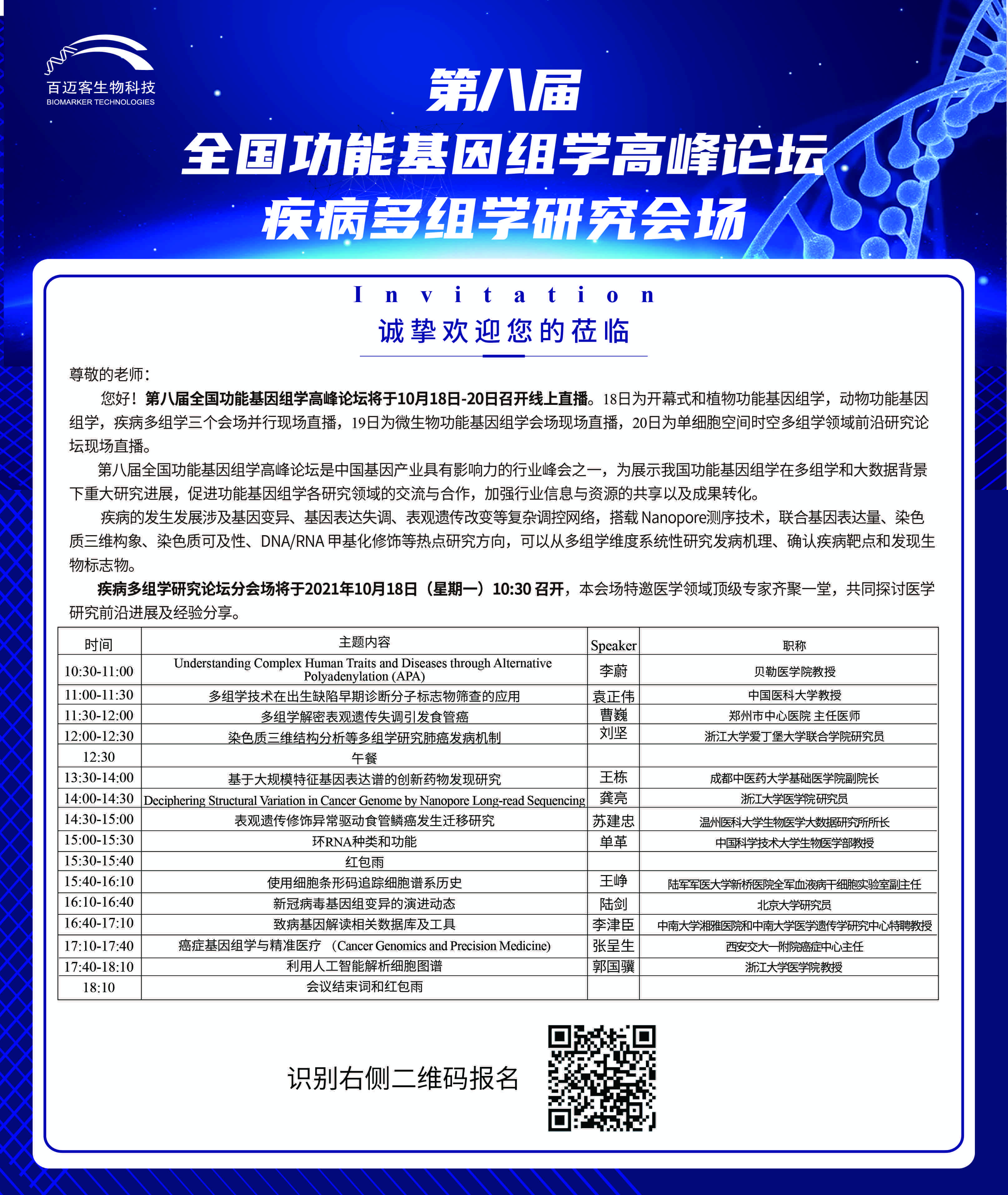 分會場四:疾病多組學(xué)前沿研究論壇