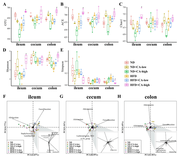 5.補充CA可減少高脂飼料喂養(yǎng)小鼠的腸道菌群失調(diào)
